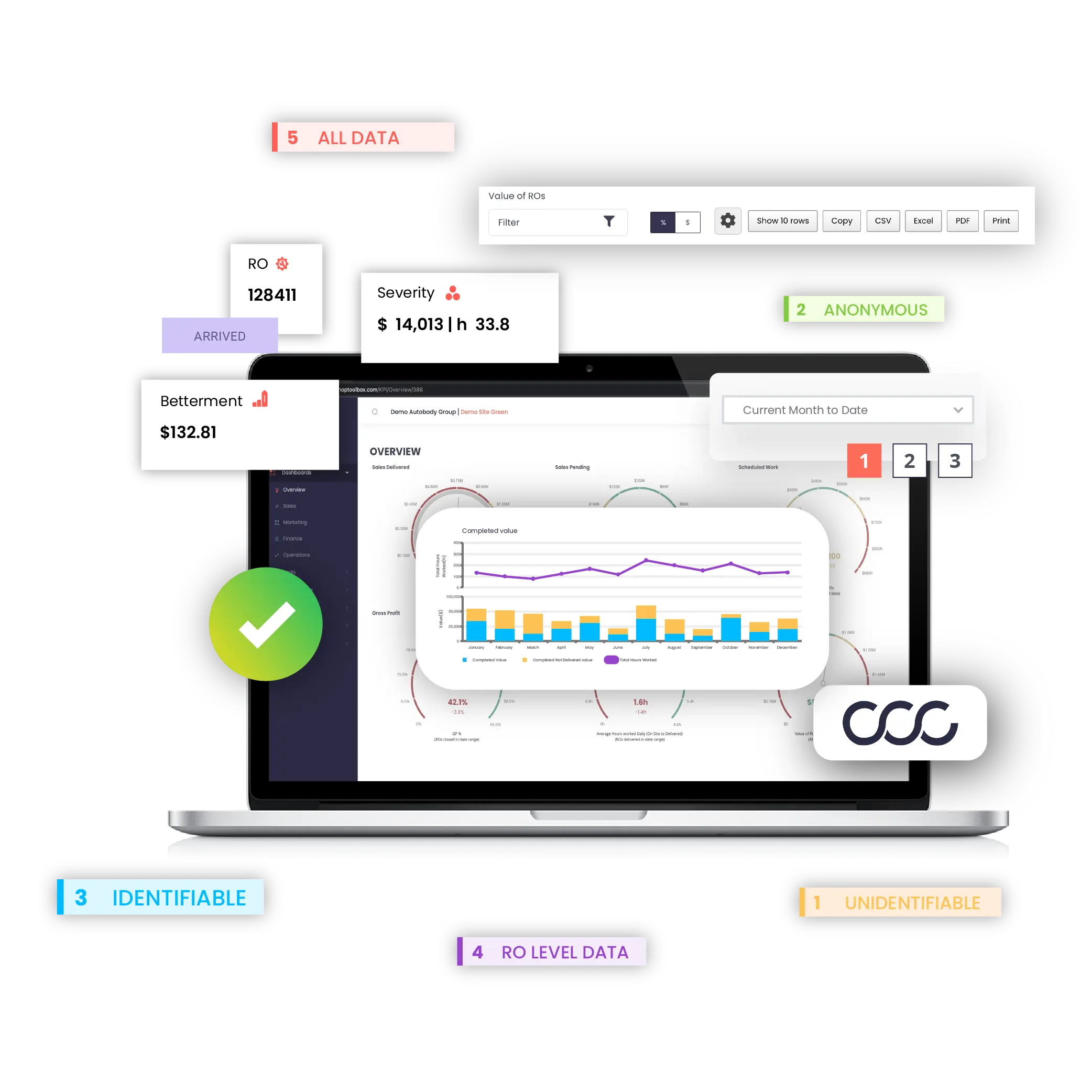 You have the data – now you’ll know how to use it. Your visual dashboards keep you up to speed on all vital processes in your collision center. The simple color-coding on each dial helps you track your KPIs, spot opportunities to improve and reach your goals every month.